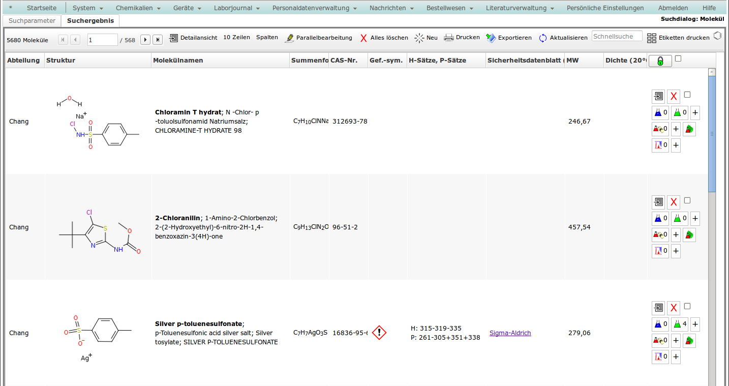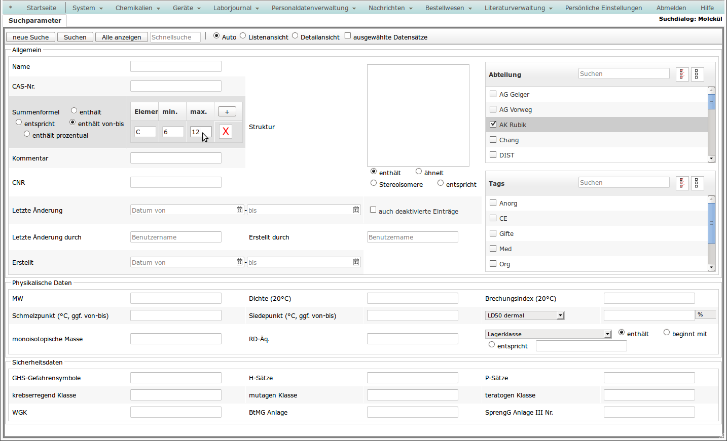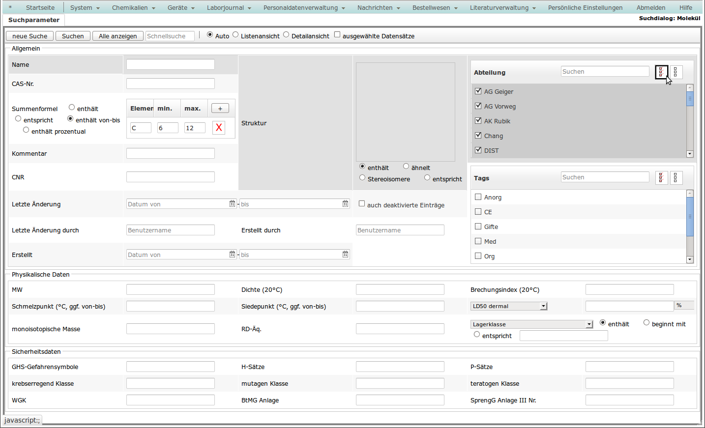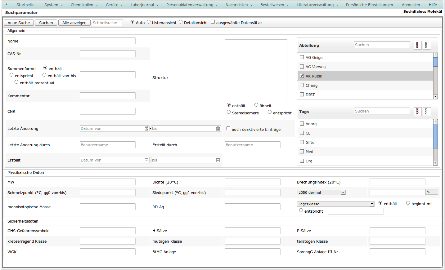 Unter Umständen werden Substanzen dezentral von einzelnen Abteilungen eingetragen und verwaltet, so daß Sie auch die Einträge anderer Abteilungen durchsuchen möchten.