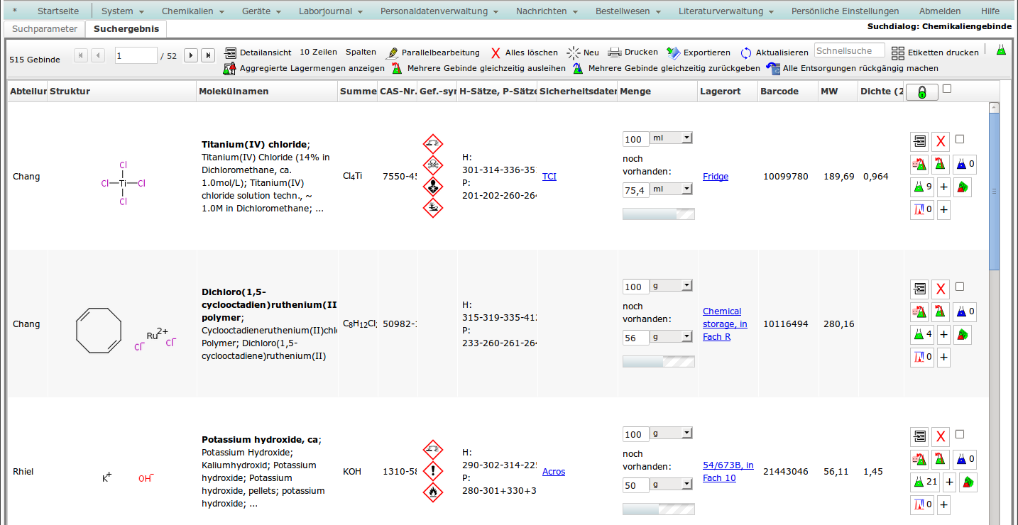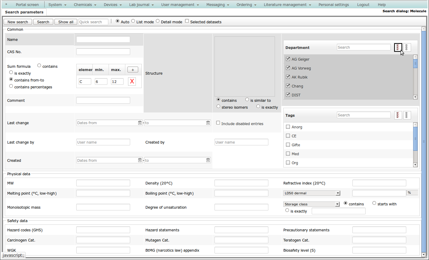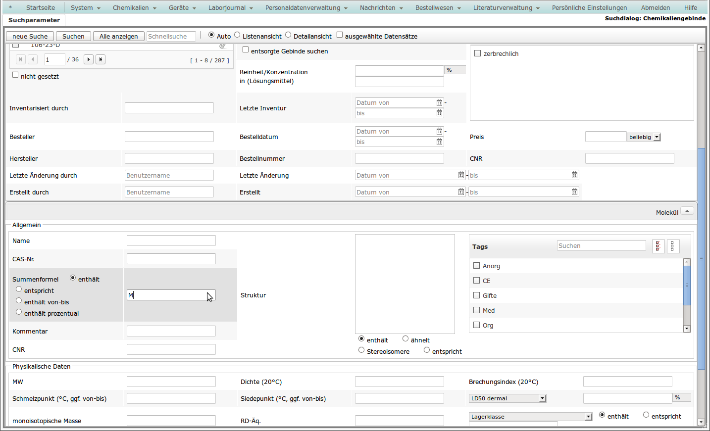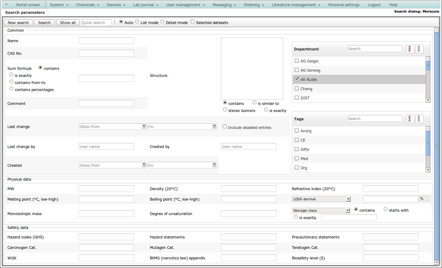 Unter Umständen werden Substanzen dezentral von einzelnen Abteilungen eingetragen und verwaltet, so daß Sie auch die Einträge anderer Abteilungen durchsuchen möchten.