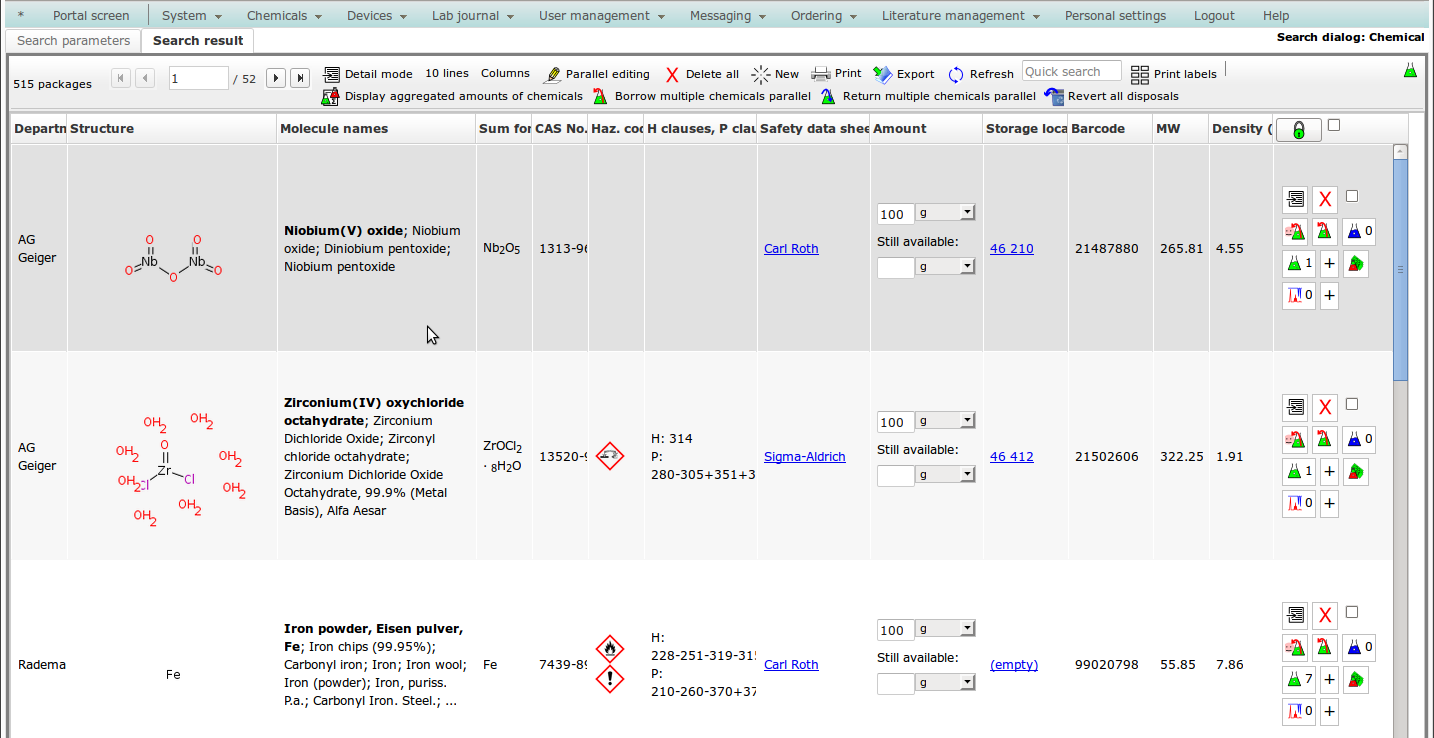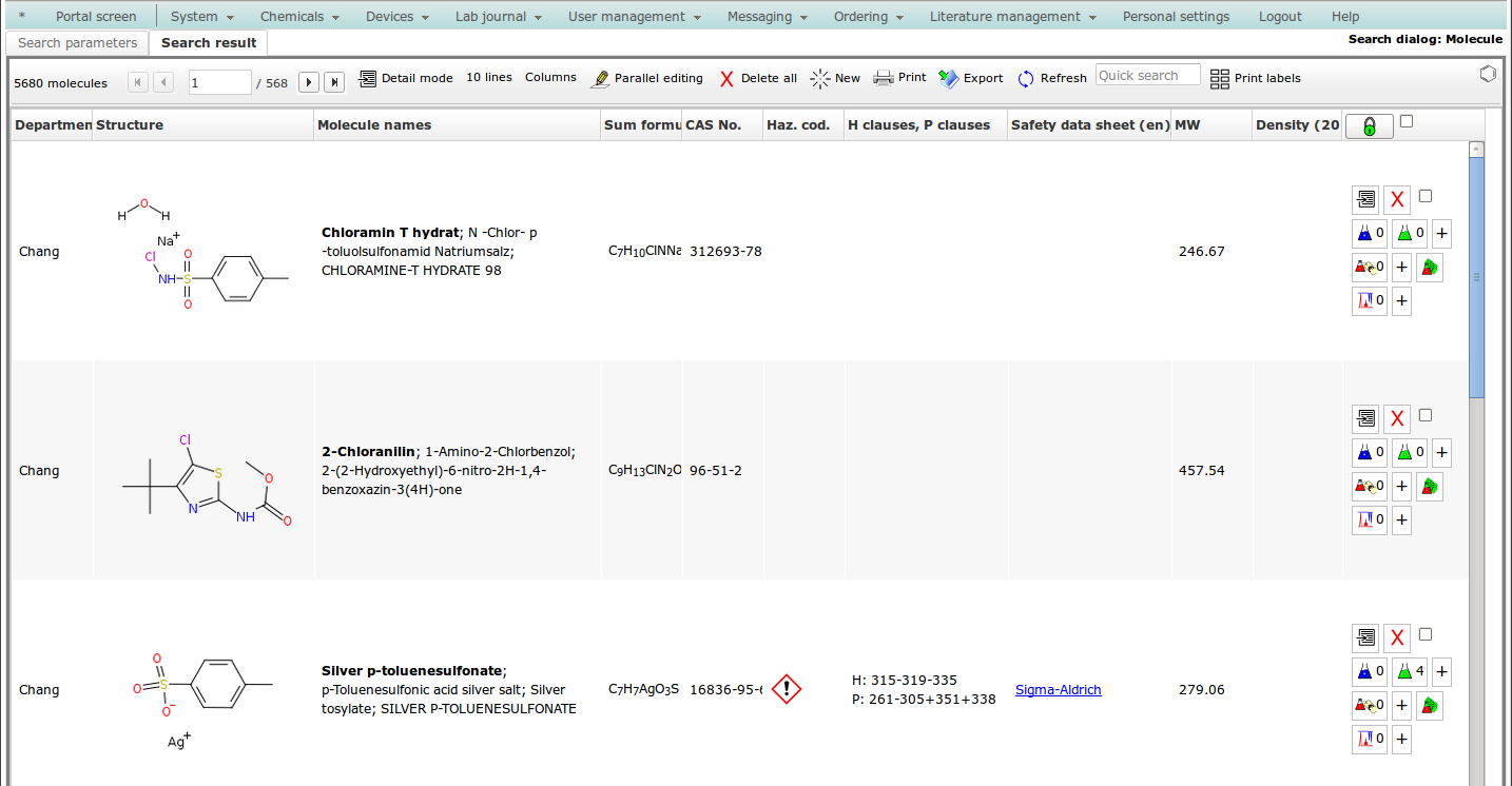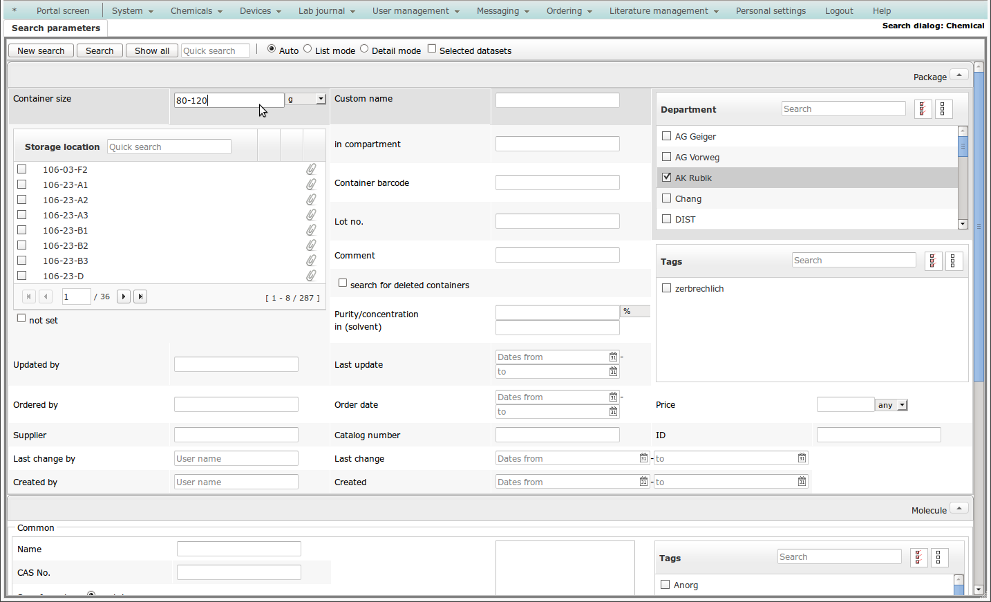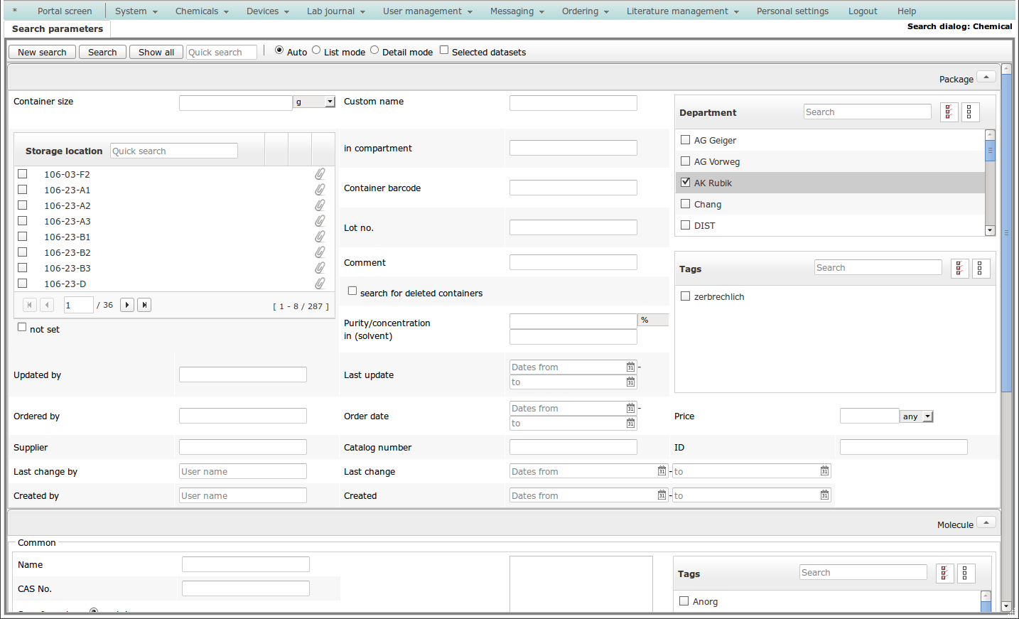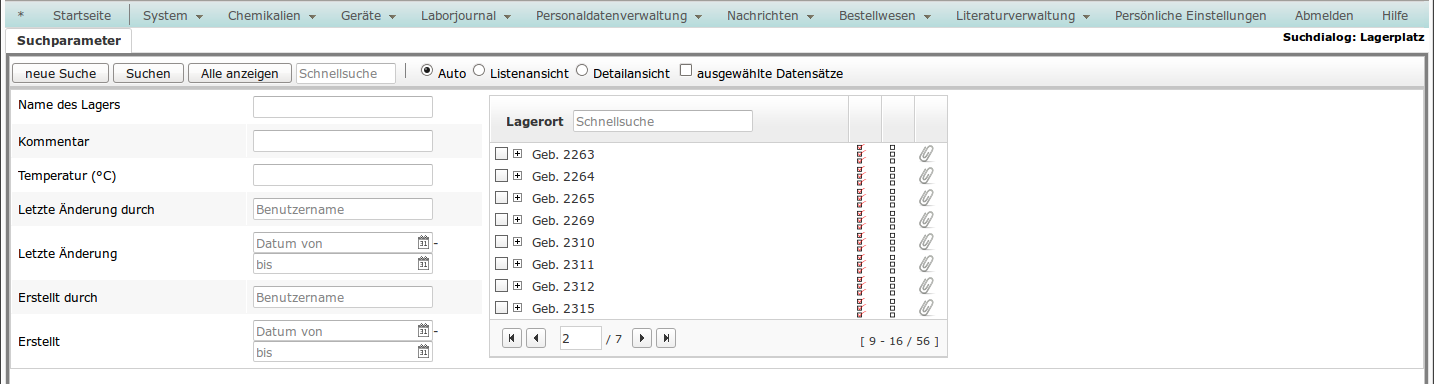 Unter Umständen werden Substanzen dezentral von einzelnen Abteilungen eingetragen und verwaltet, so daß Sie auch die Einträge anderer Abteilungen durchsuchen möchten.
