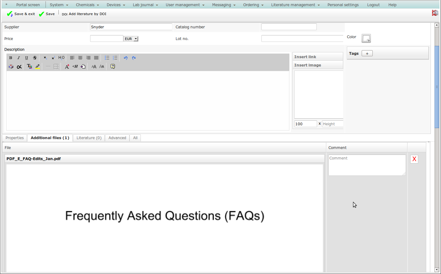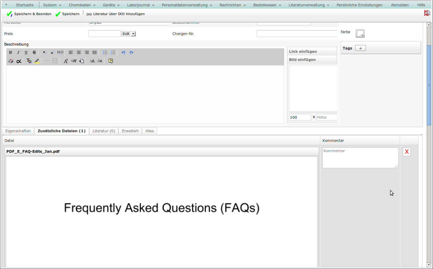 Unter "Literatur" können Sie dem Untersuchungsgegenstand relevante Literaturstellen anhängen. At "Literature", you can attach relevant citations to the object.