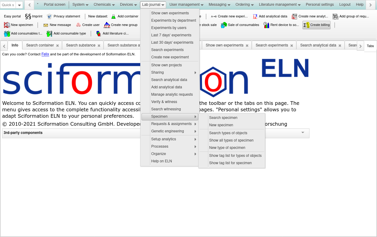 Mit Sciformation ELN können Sie die unterschiedlichsten Typen von Untersuchungsgegenständen mit den jeweils relevanten Parametern erfassen. Sciformation ELN databases can contain specimens of various types, where the parameters relevant for the given object type are documented.