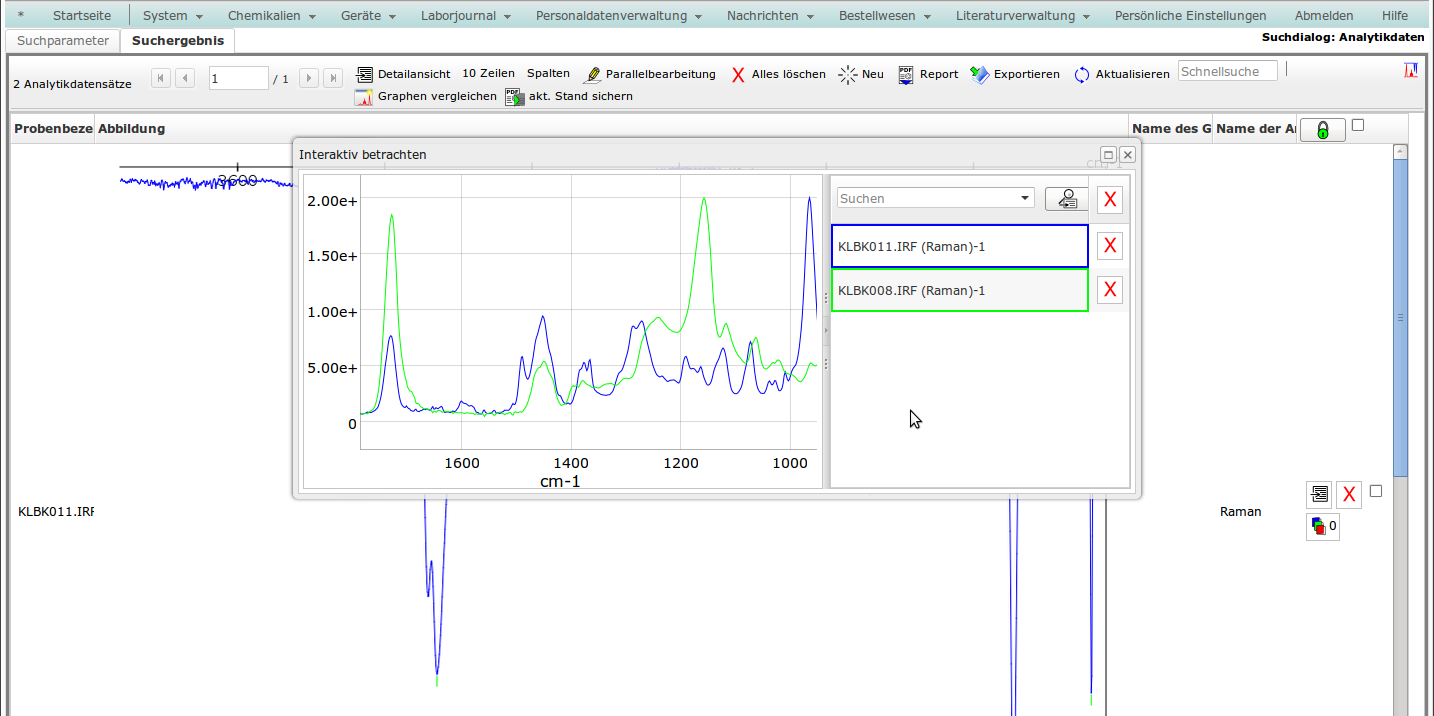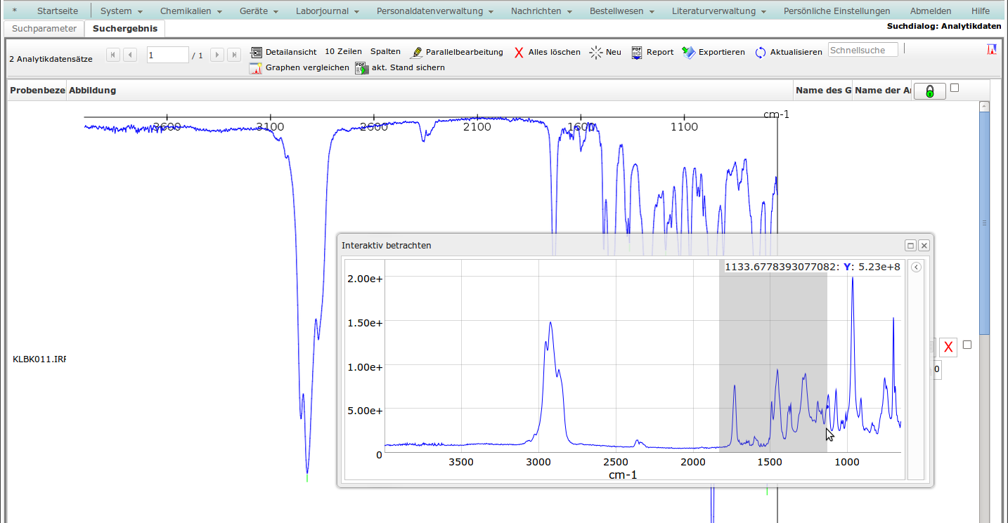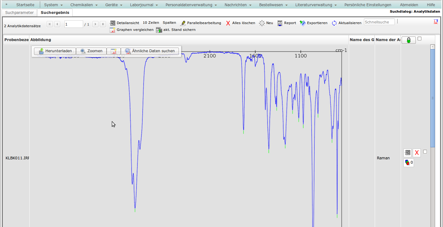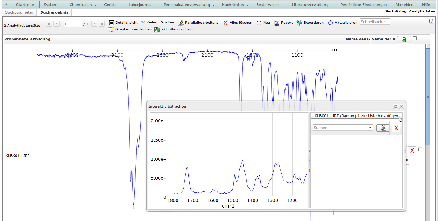 Zum Suchen von Analytikdaten wählen Sie "Laborjournal > Analytikdaten suchen".