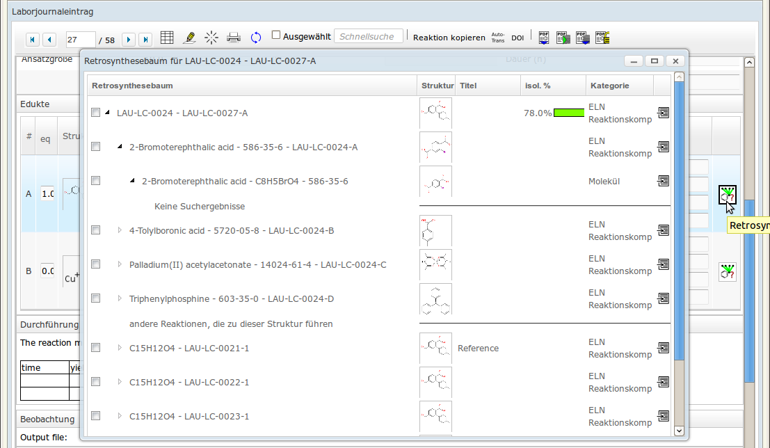 - weitere für Sie sichtbare Laborjournaleinträge, die zur entsprechenden Struktur führen. other lab notebook entries leading to this structure