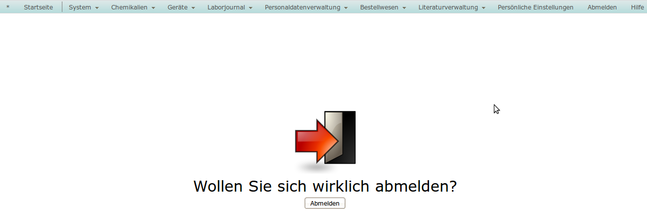 Außerdem können Sie den Dialog für persönliche Einstellungen aufrufen oder sich aus der Datenbank ausloggen.