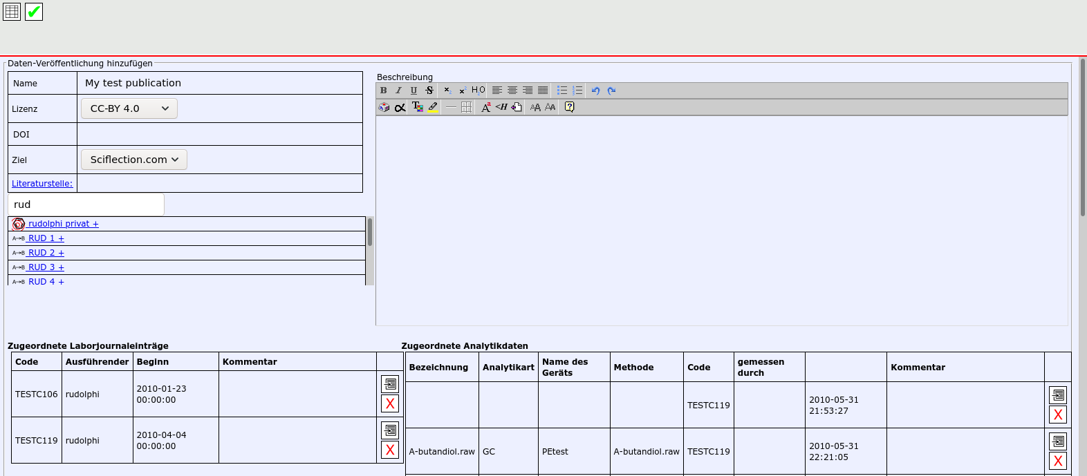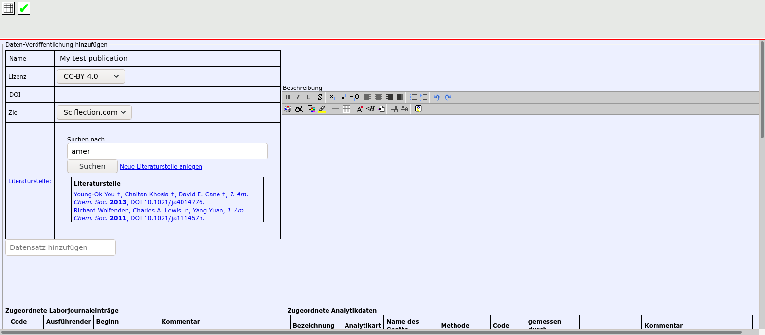 Bereiten Sie die Daten-Veröffentlichung vor, indem Sie das Formular ausfüllen und alle Daten hinzufügen.