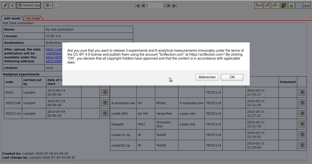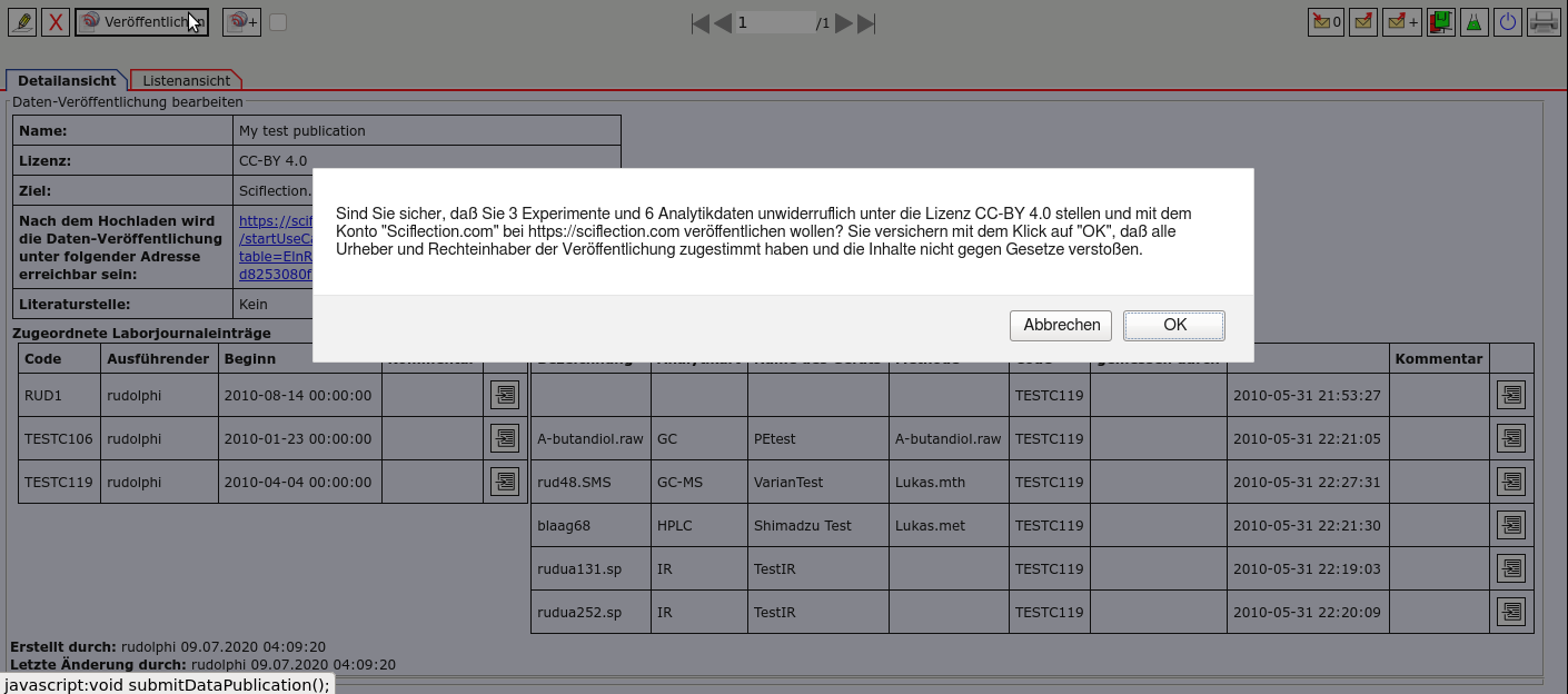 "Daten-Veröffentlichung erneut hochladen" auf Sciflection aktualisiert werden.