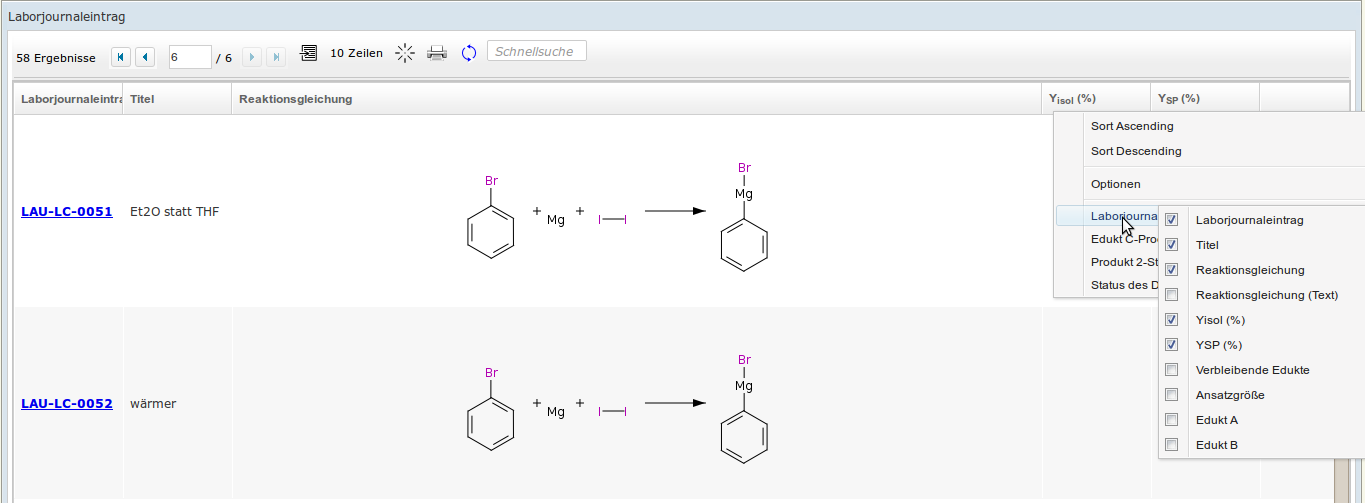 Die Listenansicht dient zur schnellen Durchsicht und zum Datenvergleich. Über das Spaltenmenü können Sie