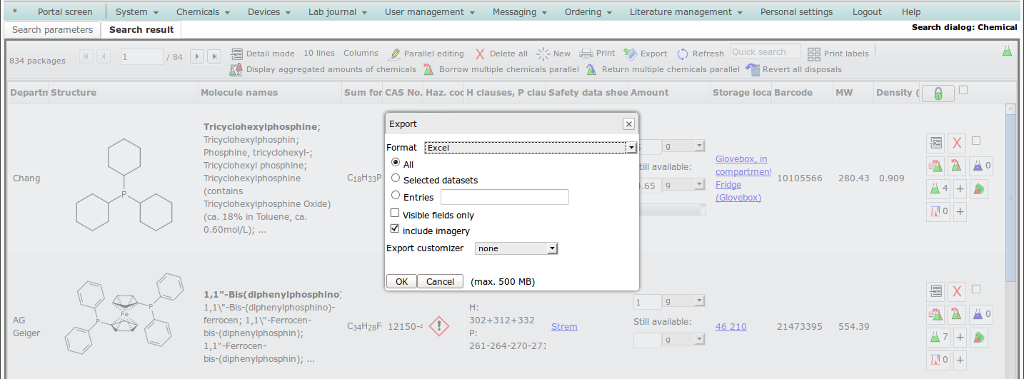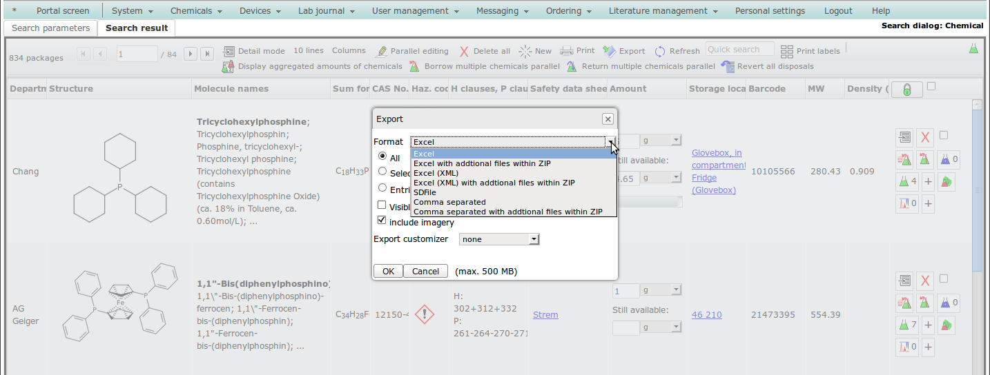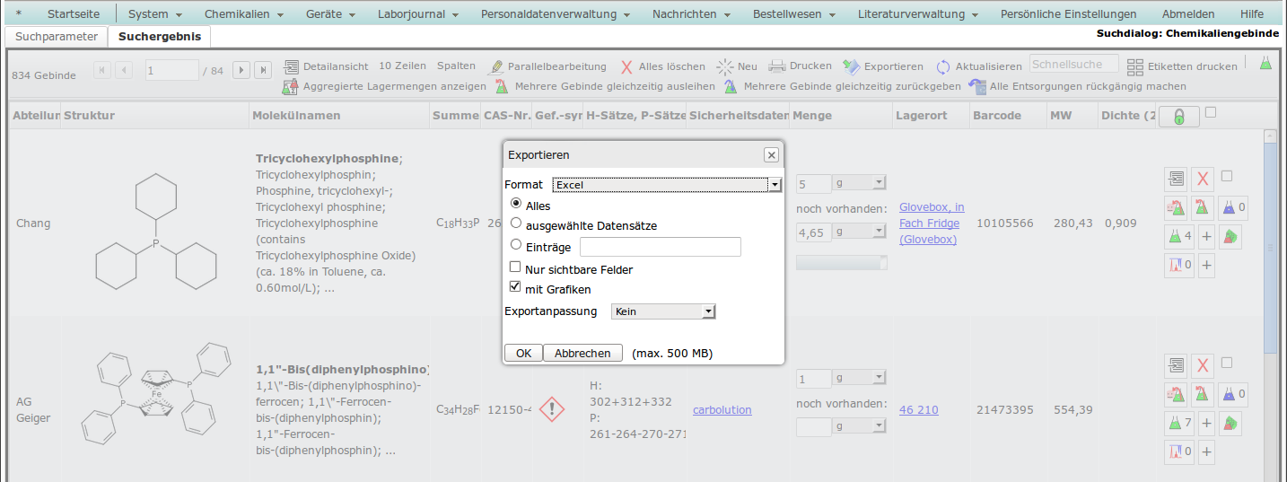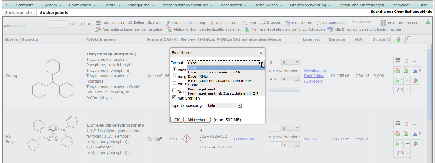 • mittels Exportieren Listen in den Formaten XLS(X), CSV oder SDFile zu exportieren oder to export lists Export in XLS(X), CSV or SDFile format or