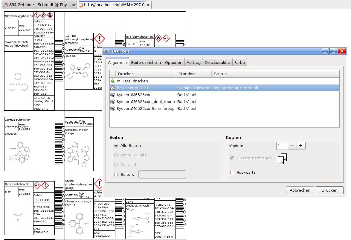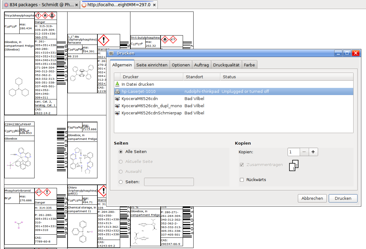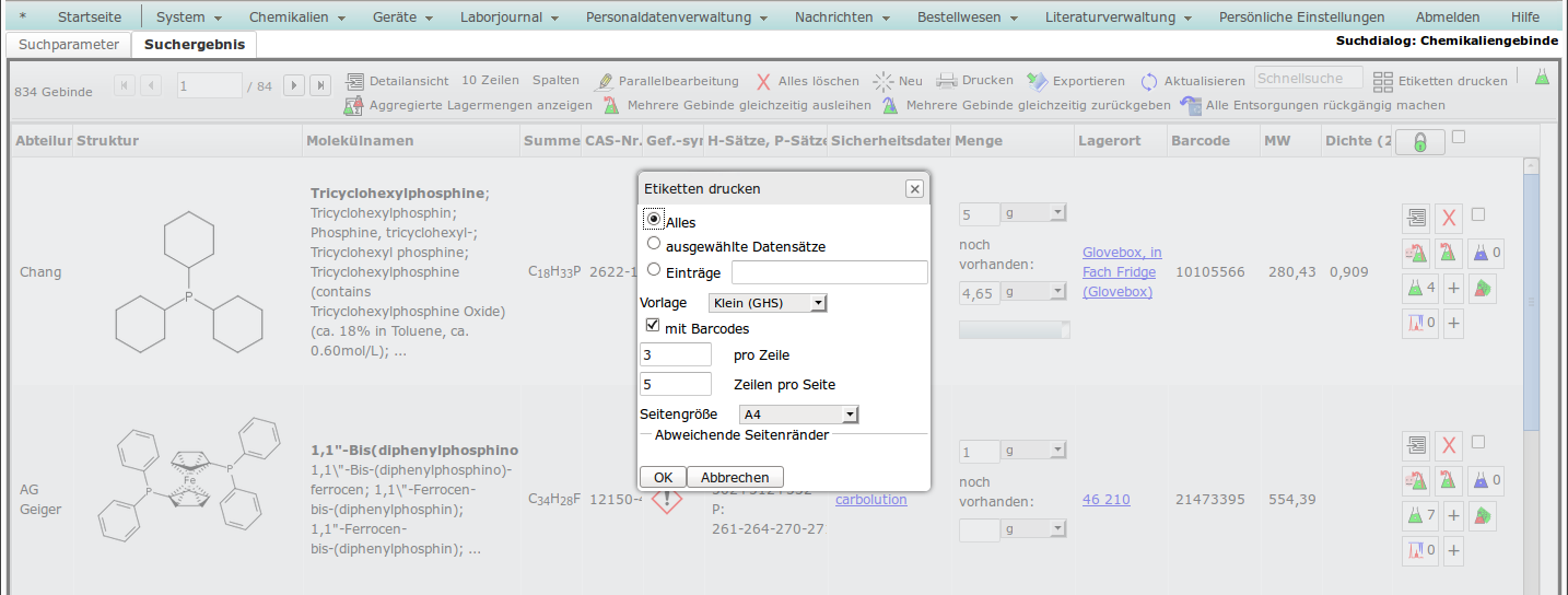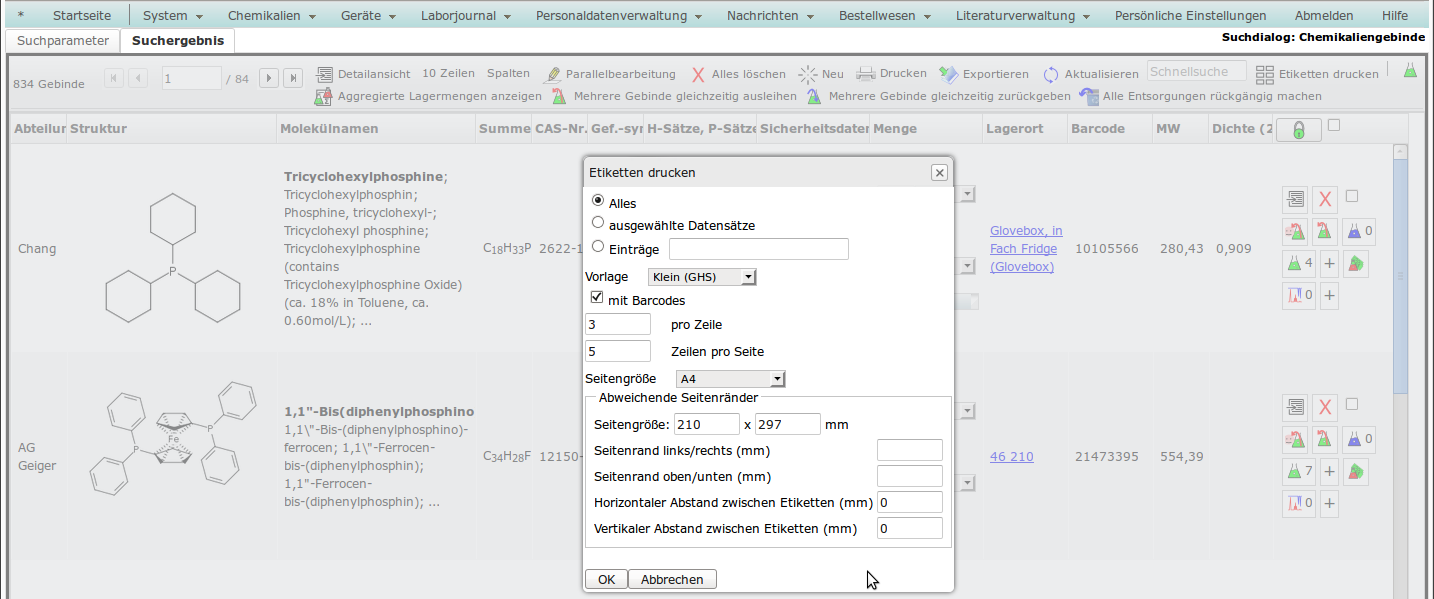 • durch Klick auf Etiketten drucken Etiketten zu drucken. to print labels by clicking Print labels.